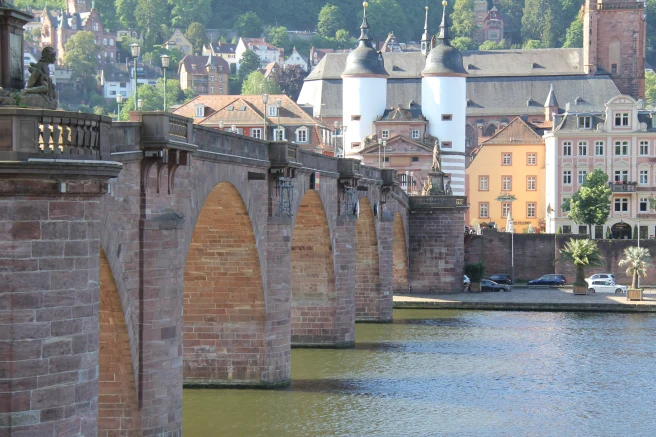 Nur wenige Schritte entfernt befindet sich die malerische Alte Brücke (Karl-Theodor-Brücke), von der aus Sie die Schönheit Heidelbergs aus einer einzigartigen Perspektive erleben. Ein Spaziergang auf dem gegenüberliegenden Philosophenweg bietet zudem einen Panoramablick auf die Stadt, besonders bei Sonnenuntergang ein echtes Highlight.